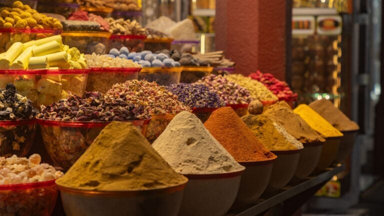 - Oud perfume: These intense, woody-warm perfumes are the signature fragrances of the Arab world. Real oud oil is crafted from the most precious raw materials in perfumery. For about 250 AED (around ~$60 USD), you can get small bottles of this “liquid gold of perfumery.”