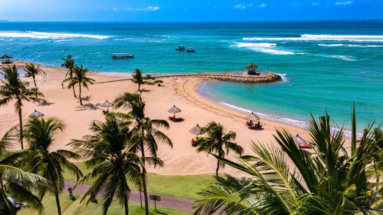 Nusa Dua is Bali’s prized resort enclave. It’s home to large international Bali resorts, polished gardens, and the most pristine white-sand beaches on the island. Think private pools and infinity pools, a private terrace, and excellent restaurants. If you’re looking for a more sophisticated and luxurious experience, this is where to stay in Bali.