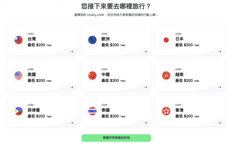 Holafly eSIM 最大優勢之一應該是其廣泛的國際覆蓋範圍。目前 Holafly eSIM 提供全球超過 200+ 國家/地區的網路服務,包含亞洲、歐洲、北美洲、南美洲、非洲或大洋洲都有,不管冷門熱門的旅遊目的地,幾乎都能在上面找到。