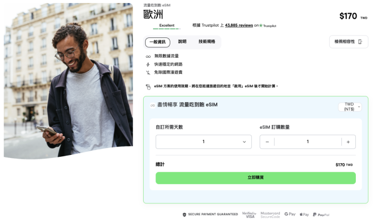 >> 使用歐洲 eSIM 享受無限流量吃到飽 << 立即享有 5% 折扣。折扣碼:MYESIMNOW5
