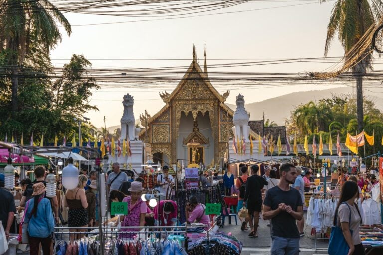 週六夜市則從下午 3 點開始陸續擺攤,到凌晨 1 點結束。除了可以買到豐富的手工藝品和創意小物外,還有許多泰式海鮮、燒烤、椰奶燒等在地美食。建議從清邁門開始逛起,順著人潮慢慢走,結束後可搭嘟嘟車返回住處。