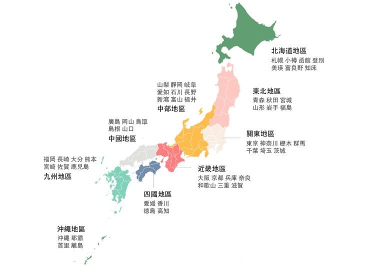 日本主要分為九大地區,每個地區都有其獨特的文化特色和旅遊亮點: